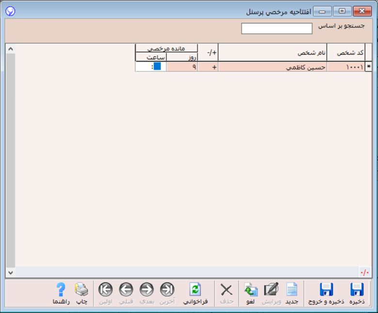 اگر شما جز آن دسته از شرکت هایی هستید که بخشی از مانده مرخصی پرسنل را به سال مالی بعدی منتقل می کنید، باید در دوره مالی 1404 در برگه افتتاحیه مانده مرخصی موجود در بخش معرفی ، مرخصی انتقال یافته به سال 1404 را وارد کنید.